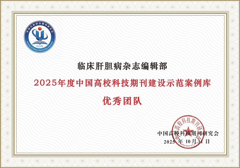 本刊为中国科技期刊卓越行动计划· 中文领军期刊(2024—2028)、中国科技期刊卓越行动计划·中国高校医学集群:创始成员刊(2024—2028)、百种中国杰出学术期刊(2018年、2020年、2021年、2022年)、中国精品科技期刊暨“中国精品科技期刊顶尖学术论文(F5000)”项目来源期刊(2017—2026)、《科技期刊世界影响力指数(WJCI)报告》收录期刊(Q3区)、北大中文核心期刊、中国科技论文统计源期刊(中国科技核心期刊)、RCCSE中国权威学术期刊(A+)。