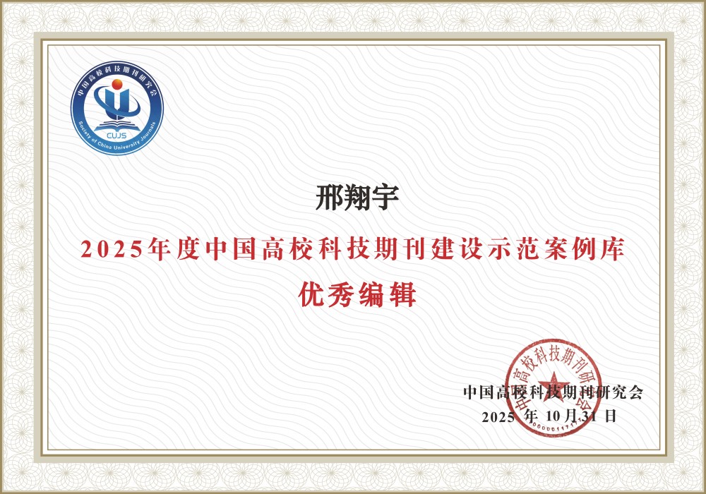 2025年度中国高校科技期刊建设示范案例库•优秀编辑(邢翔宇) ![]()