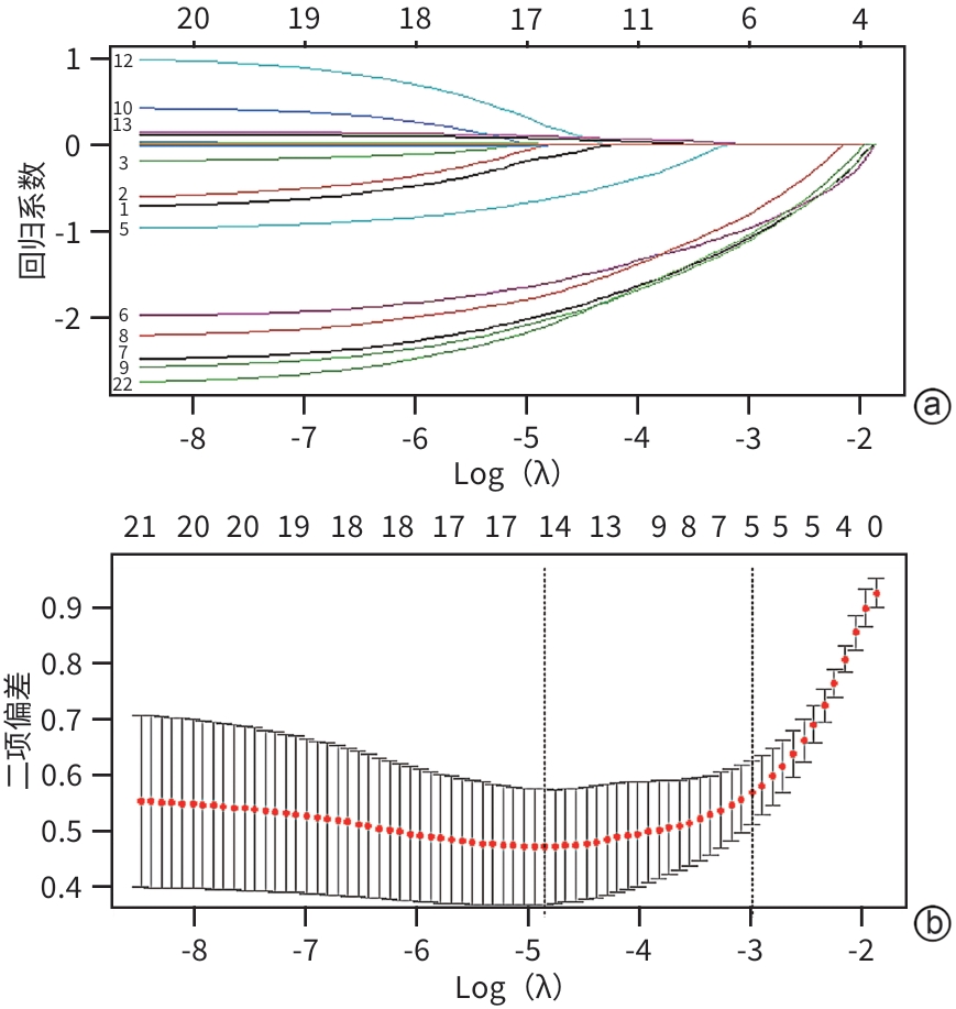 目的 探讨胰腺癌患者中医证候的影响因素,为胰腺癌中医辨证及标准化治疗提供理论参考。 方法 选取2019年1月—2023年12月在山西省中医药研究院、山西中医药大学附属医院、山西省中西医结合医院收治的经病理或临床诊断为胰腺癌的608例患者,并进行中医辨证分型。计数资料组间比较采用χ2检验。将组间有统计学意义的临床资料纳入回归分析,运用无序多分类Logistic回归模型探究胰腺癌中医证候的影响因素。 结果 608例胰腺癌患者首发症状以腹痛(32.40%)、腹胀(23.85%)、神疲乏力(16.12%)、消瘦(10.03%)为常见。主要临床症状表现为纳差(75.97%)、腹痛(67.27%)、神疲乏力(61.84%)、腹胀(57.40%)、消瘦(53.62%)等。性别(χ2=62.823,P<0.001)、病程(χ2=14.868,P=0.011)、临床分期(χ2=21.006,P<0.001)、淋巴转移(χ2=12.205,P=0.032)、手术(χ2=38.008,P<0.001)、化疗(χ2=21.384,P<0.001)、放疗(χ2=17.510,P=0.004)、免疫治疗(χ2=18.573,P=0.002)在胰腺癌各中医证候间比较,差异均有统计学意义。Logistic回归分析提示,性别为男性是气血亏虚证(OR=0.081,95%CI:0.031~0.213,P<0.001)、气滞血瘀证(OR=0.100,95%CI:0.041~0.247,P<0.001)、阴虚内热证(OR=0.158,95%CI:0.057~0.444,P<0.001)的保护因素、是湿热蕴结证(OR=2.378,95%CI:1.074~5.266,P=0.033)的危险因素;病程<1年为气血亏虚证(OR=0.167,95%CI:0.073~0.383,P<0.001)、脾肾阳虚证(OR=0.183,95%CI:0.089~0.378,P<0.001)、阴虚内热证(OR=0.164,95%CI:0.070~0.385,P<0.001)的保护因素;临床分期为Ⅰ期、Ⅱ期、Ⅲ期者为湿热蕴结证(OR=2.793,95%CI:1.259~6.196,P=0.012)、气滞血瘀证(OR=7.863,95%CI:2.808~22.020,P<0.001)的危险因素;淋巴转移为气血亏虚证(OR=4.005,95%CI:1.477~10.861,P=0.006)的危险因素;接受手术治疗为气血亏虚证(OR=4.151,95%CI:1.916~8.995,P<0.001)、脾肾阳虚证(OR=5.352,95%CI:2.436~11.759,P<0.001)、气滞血瘀证(OR=2.334,95%CI:1.071~5.088,P=0.033)、阴虚内热证(OR=4.167,95%CI:1.789~9.707,P<0.001)的危险因素;接受化学治疗为湿热蕴结证(OR=0.188,95%CI:0.082~0.428,P<0.001)的保护因素;接受放射治疗为湿热蕴结证(OR=2.571,95%CI:1.151~5.746,P=0.021)、阴虚内热证(OR=8.384,95%CI:3.348~20.997,P<0.001)的危险因素;接受免疫治疗为气血亏虚证(OR=2.114,95%CI:1.021~4.379,P=0.044)的危险因素。 结论 性别,病程,临床分期,是否有淋巴转移,是否接受过手术、化疗、放疗、免疫治疗是影响胰腺癌中医证候的主要因素。