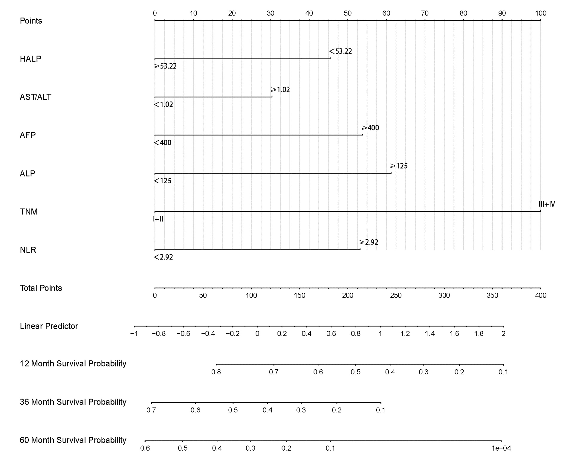 基于HALP评分的列线图模型对肝细胞癌患者肝切除术后预后的预测价值