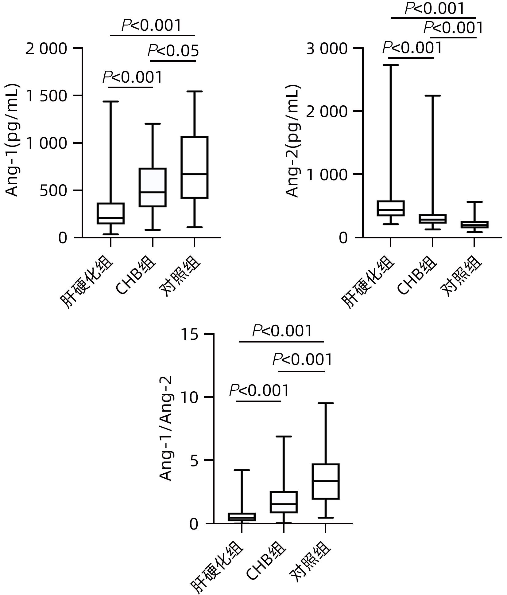 慢性乙型肝炎及肝硬化患者血清血管生成素1、2及其比值变化与HBV DNA和ALT的相关性分析