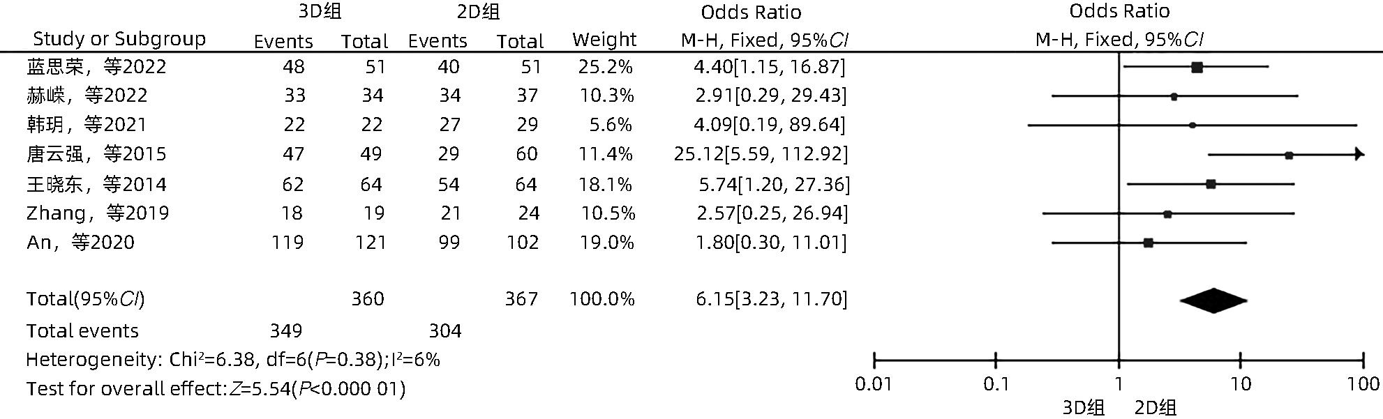 Figure  2.  Forest plot of first treatment success rate in 3D group and 2D group