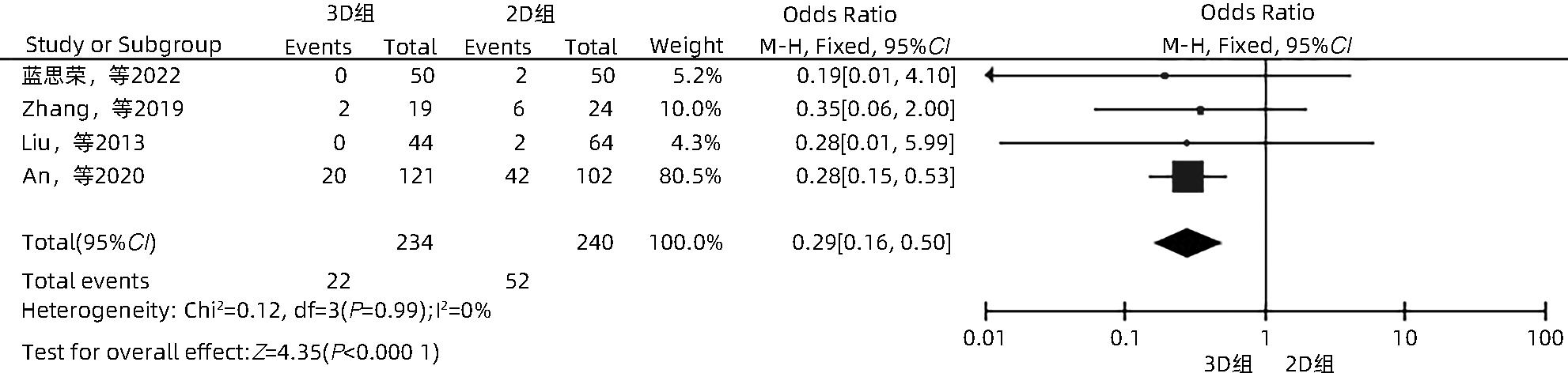 图  6  3D组与2D组轻度并发症发生率的森林图