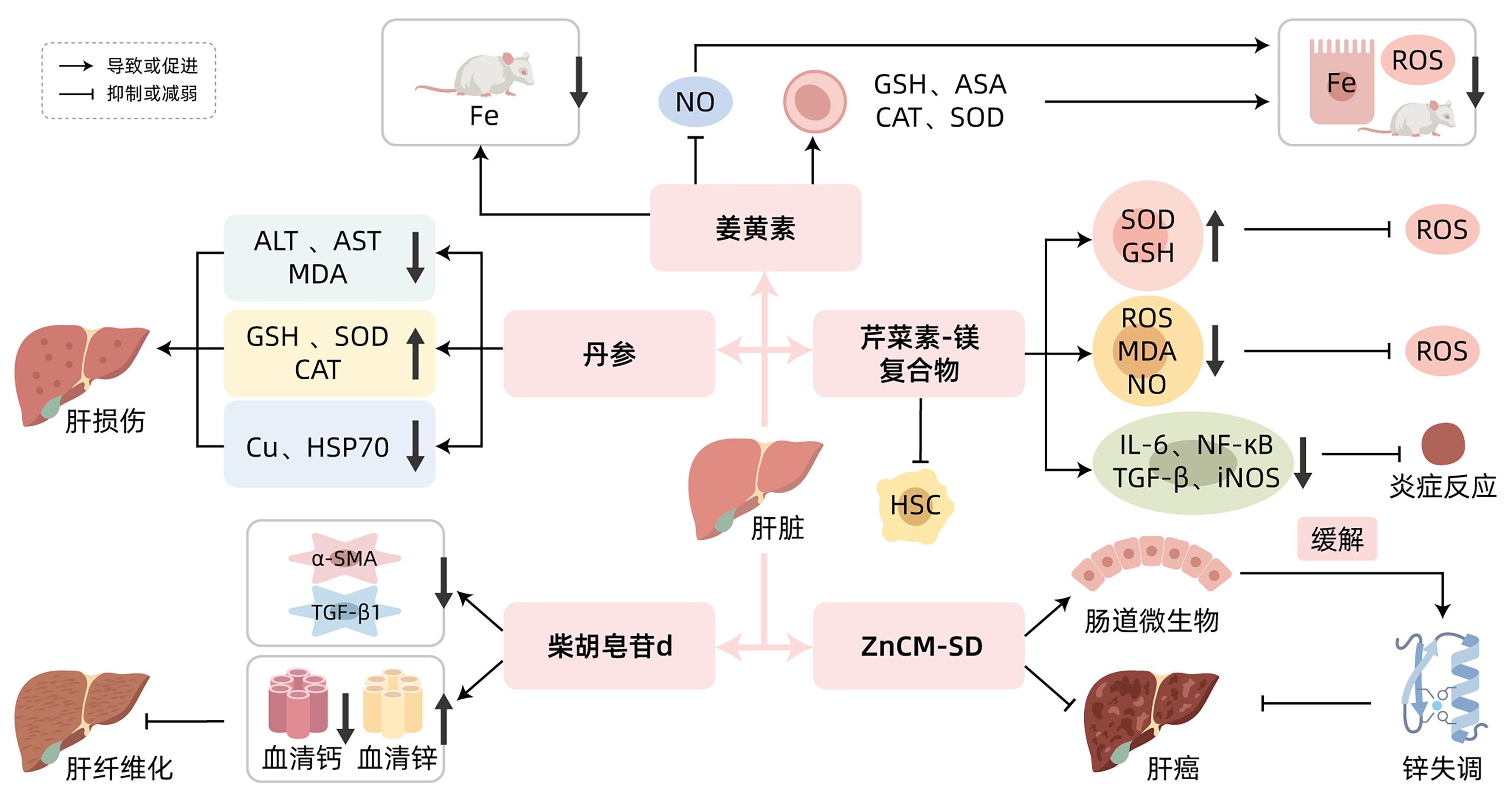 摘要: 慢性肝病具有较高的发病率,给社会和家庭带来沉重负担。研究发现金属离子代谢与慢性肝病密切相关,部分中草药可以通过调控金属离子代谢发挥防治慢性肝病的作用。目前用于治疗慢性肝病的合成药物疗效并不理想,因此多种中草药被用于慢性肝病的补充和替代疗法。本文介绍了金属离子代谢在慢性肝病中的作用和中草药及其活性成分对慢性肝病的调控作用,分析表明金属离子代谢有望为慢性肝病的研究提供新思路,为临床慢性肝病的治疗提供理论依据。对于金属离子代谢防治慢性肝病,未来还需要更多前瞻性临床研究数据,为慢性肝病患者提供有效、安全的治疗方案。Abstract: Chronic liver disease (CLD) tends to have a high incidence rate and impose a serious burden on society and families. Studies have shown that metal ion metabolism is closely associated with CLD, and some Chinese herbal medicines can play a role in the prevention and treatment of CLD by regulating metal ion metabolism. At present, the synthetic drugs currently used for the treatment of CLD fail to achieve a satisfactory effect, and therefore, a variety of Chinese herbal medicines are being used as supplementary and alternative therapies for CLD. This article introduces the role of metal ion metabolism in CLD and the regulatory effect of Chinese herbal medicines and their active components on CLD, and the analysis shows that metal ion metabolism is expected to provide new ideas for the research on CLD and a theoretical basis for the clinical treatment of CLD. For the role of metal ion metabolism in the treatment of CLD, more prospective clinical study data are needed in the future to provide effective and safe treatment regimens for patients with CLD.