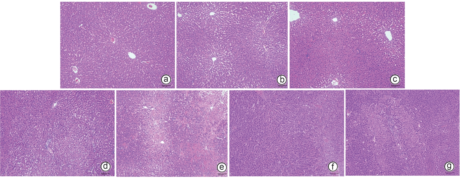 目的 观察高原低氧适应对肝缺血再灌注损伤(HIRI)大鼠模型的保护作用,探索高原低氧适应激活自噬的作用机制。 方法 将56只SD雄性大鼠随机分为以下7组:平原假手术组(P-S)、平原模型组(P-M)、急性高原低氧假手术组(AHH-S)、急性高原低氧模型组(AHH-M)、高原低氧适应假手术组(HHA-S)、高原低氧适应模型组(HHA-M),以及含AMPK抑制剂复合物C(CC)的高原低氧适应模型组(HHA-M-CC),每组8只。急性高原低氧组和高原低氧适应组分别将大鼠置于海拔5 000米的低压氧舱中1周和12周;假手术组仅开腹暴露肝门静脉,未做血管夹闭处理;HHA-M-CC组术前1 h行腹腔注射20 mg/kg剂量CC,其余组注射等体积生理盐水。采用全自动生化分析仪检测肝功能指标ALT、AST、TBil水平;苏木素-伊红染色观察肝组织病理改变;透射电镜观察肝组织自噬体形成情况;RT-qPCR检测肝脏腺苷酸活化蛋白激酶(AMPK)、Unc-51样自噬激活激酶1(ULK1)mRNA表达水平;Western Blot技术检测磷酸化腺苷酸蛋白激酶(p-AMPK)、磷酸化UNC-51样激酶(p-ULK1)、Beclin-1、微管相关蛋白1轻链3Ⅱ型(LC3Ⅱ)蛋白的表达水平。计量资料多组间比较采用方差分析,进一步两两比较采用LSD-t检验。 结果 与AHH-M组和HHA-M-CC组比较,HHA-M组ALT、AST、TBil水平明显降低(P值均<0.05),肝组织病理损伤减弱,Suzuki评分显著降低(P值均<0.05),透射电镜下肝细胞形态结构异常程度减弱,自噬体数量明显增多,AMPK、ULK1 mRNA表达水平均明显上升(P值均<0.05),p-AMPK、p-ULK1、Beclin-1、LC3Ⅱ蛋白表达明显上调(P值均<0.05)。 结论 高原低氧适应可通过AMPK/ULK1信号通路相关蛋白的激活,增强肝细胞的自噬作用,进而缓解SD大鼠HIRI。 -