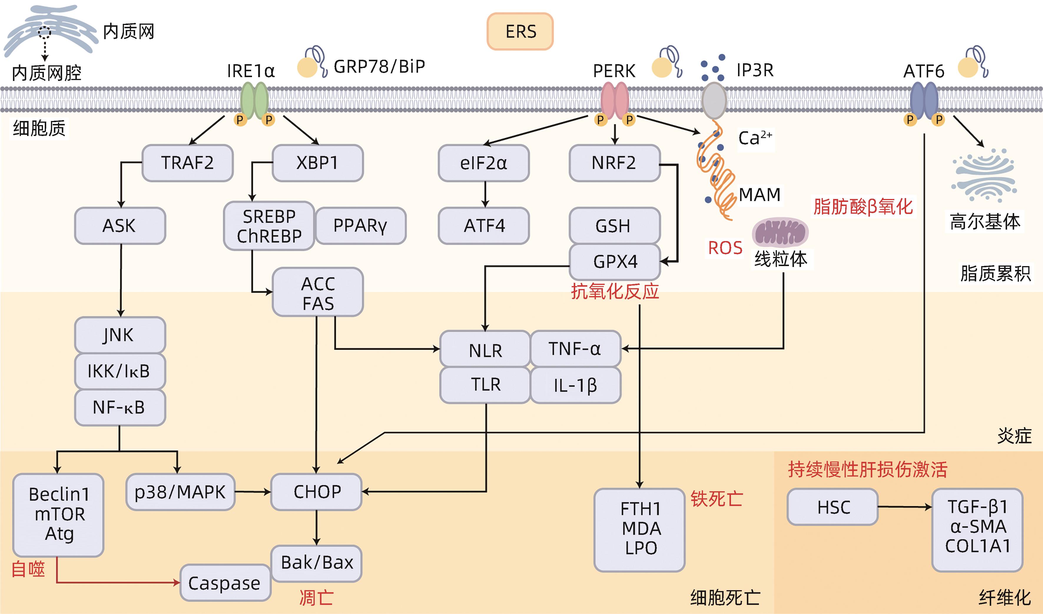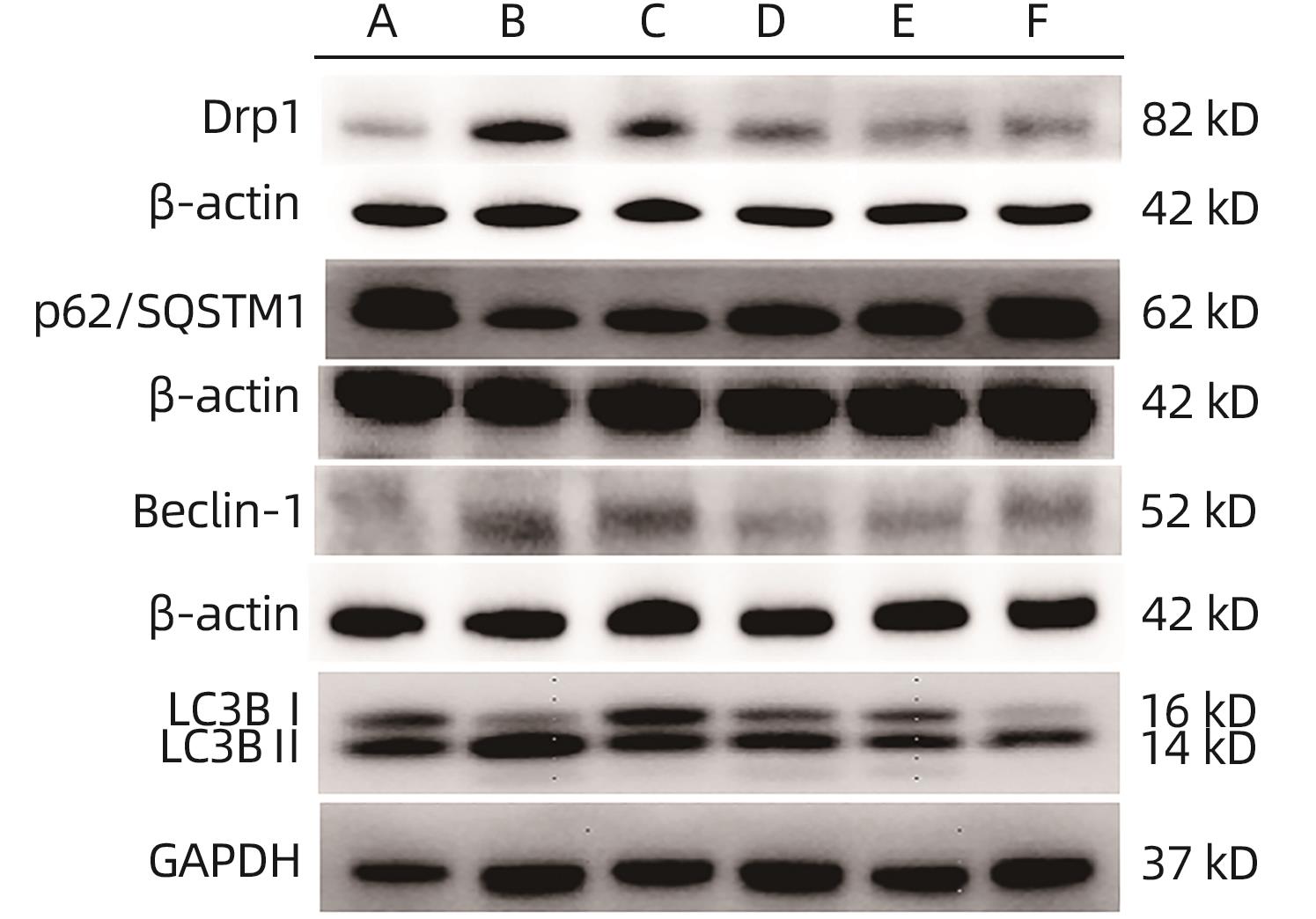 Objective To investigate the therapeutic effect and mechanism of action of Qizhu prescription in mice with non-alcoholic fatty liver disease (NAFLD). Methods A total of 60 male C57BL/6J mice were randomly divided into normal group, model group, low-dose Qizhu prescription group (4.75 g/kg), middle-dose Qizhu prescription group (9.50 g/kg), high-dose Qizhu prescription group (19.00 g/kg), Yishanfu group (228 mg/kg), with 10 mice in each group. After 16 weeks of modeling with a high-fat high-cholesterol diet and 20% fructose water, each group was given the corresponding drug once a day for 8 weeks. The serum levels of alanine aminotransferase (ALT), aspartate aminotransferase (AST), total cholesterol (TC), triglyceride (TG), and low-density lipoprotein (LDL) were measured; ELISA was used to measure the serum levels of free fatty acid (FFA), tumor necrosis factor-α (TNF-α), interleukin-1β (IL-1β), superoxide dismutase (SOD), and malondialdehyde (MDA); HE staining and oil red O staining were used to the pathological changes of liver tissue; Western blot was used to measure the protein expression levels of LC3BⅡ/Ⅰ, p62/SQSTM1, Beclin-1, and Drp1, and real-time PCR was used to measure the mRNA expression levels of Drp1, Beclin-1, and p62/SQSTM1. A one-way analysis of variance was used for comparison of continuous data between multiple groups, and the least significant difference t-test was used for further comparison between two groups. Results Compared with the normal group, the model groups had significant increases in the serum levels of TG, TC, ALT, AST, LDL, FFA, TNF-α, IL-1β, and MDA and a significant reduction in the serum level of SOD (P<0.05). HE staining showed that the mice in the model group had hepatocyte steatosis and a large number of fat vacuoles in liver tissue, and oil red O staining showed that the mice in the model group had a large number of red lipid droplets of varying sizes in hepatocytes, with a significant increase in the percentage of oil red O staining area compared with the normal group (P<0.05). Real-time PCR showed that compared with the normal group, the model group had significant increases in the mRNA expression levels of Drp1 and Beclin-1 and a significant reduction in the mRNA expression level of p62/SQSTM1 in liver tissue (all P<0.05), and Western blot showed that compared with the normal group, the model group had significant increases in the protein expression levels of Drp1, Beclin-1, and LC3BⅡ/Ⅰ and a significant reduction in the protein expression level of p62/SQSTM1 in liver tissue (all P<0.05). Compared with the model group, some Qizhu prescription groups and the Yishanfu group had significant reductions in the serum levels of TG, TC, ALT, AST, LDL, FFA, TNF-α, IL-1β, and MDA and a significant increase in the serum level of SOD (all P<0.05). Compared with the model group, each administration group had a significant improvement in steatosis of liver tissue, a significant reduction in the percentage of oil red O staining area, significant reductions in the mRNA expression levels of Drp1 and Beclin-1, and a significant increase in the mRNA expression level of p62/SQSTM1 (all P<0.05); there were significant reductions in the protein expression levels of Drp1, Beclin-1, and LC3BⅡ/Ⅰ, while some administration groups had a significant increase in the protein expression level of p62/SQSTM1 (all P<0.05), with a significantly better effect in the middle- and high-dose Qizhu prescription groups (all P<0.01). Conclusion Qizhu prescription improves lipid metabolism and inflammation in mice with NAFLD possibly by regulating hepatocyte mitophagy.