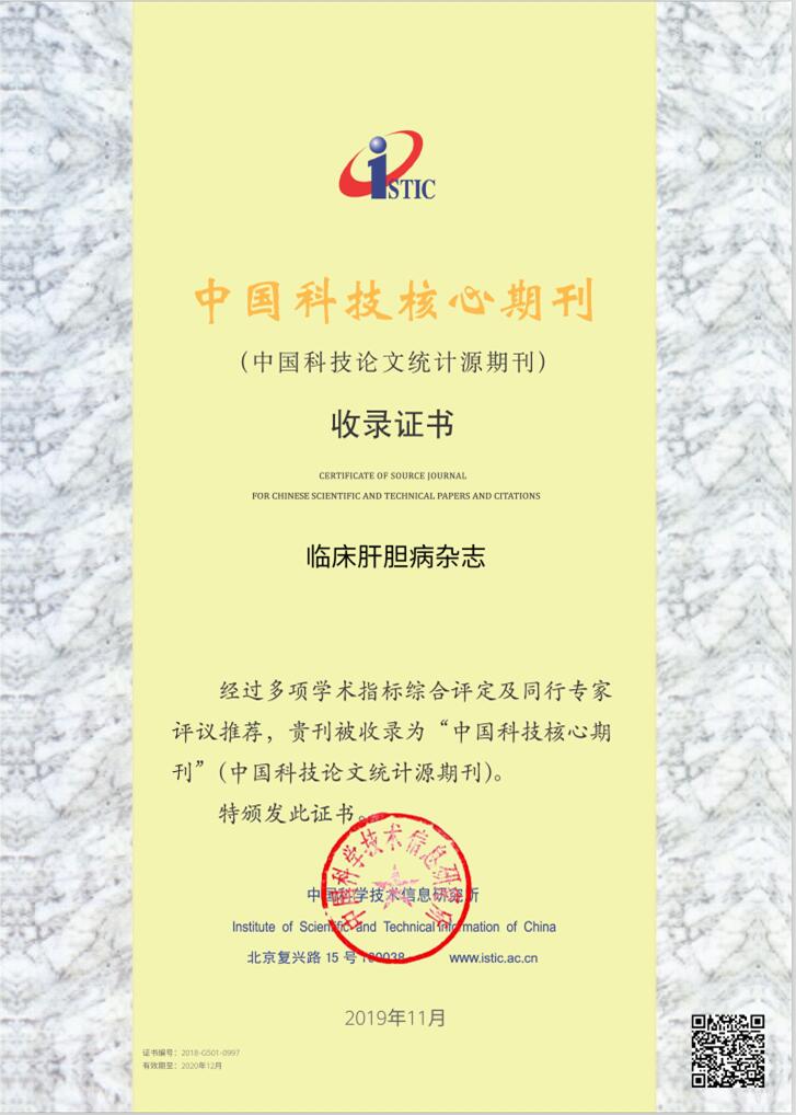 《临床肝胆病杂志》核心影响因子为1.598,在16种消化病学类核心期刊中排名第1位,较消化病学类核心期刊核心影响因子平均值(0.810)高出97%。在2049种中国科技核心期刊中排名第106位,位居前5.17%。