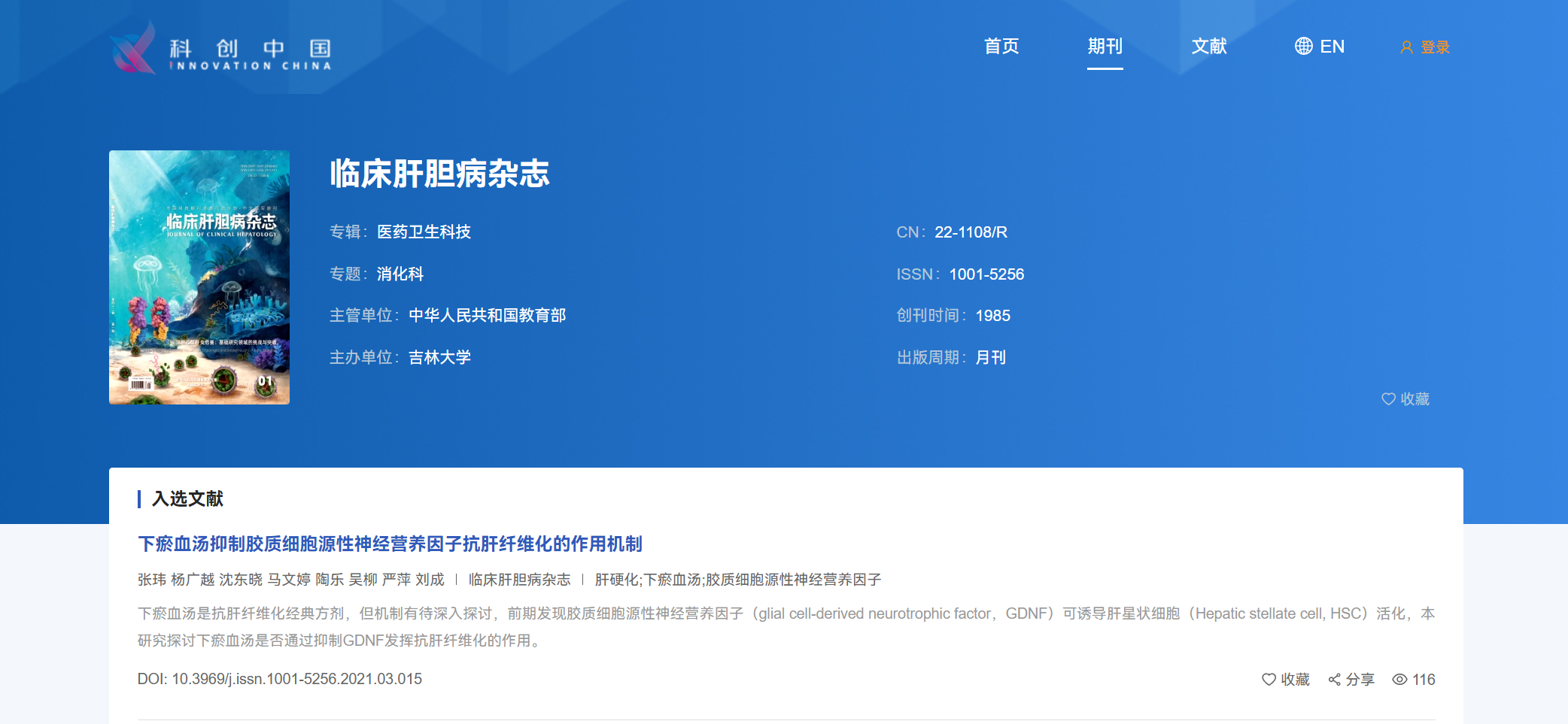 近日,中国科协发布“2025年度科技期刊双语传播工程”入选名单,《临床肝胆病杂志》15篇论文入选“结构化论文双语传播工程”,入选论文名单详见:https://castsycb.cbpt.cnki.net/#/periodical-detail?id=LCGD。