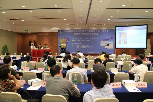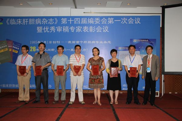 《临床肝胆病杂志》第十四届编委会第一次会议暨优秀审稿专家表彰会议于2011年6月24日在南京国际博览中心302会议室召开。参加本次会议的编委、优秀审稿专家、优秀论文作者共计90余人。