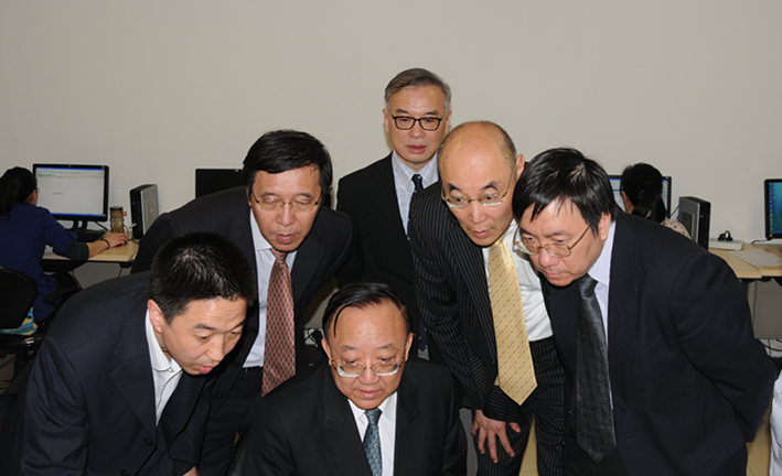 刘允怡院士进行学术指导:刘允怡院士(正中)、牛俊奇教授(左二)