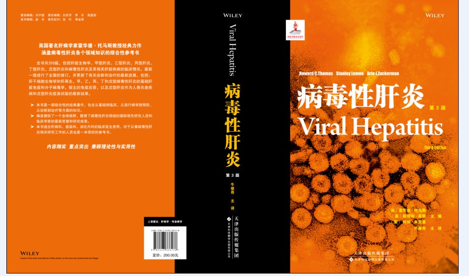 《临床肝胆病杂志》主编牛俊奇教授组织翻译的《病毒性肝炎》一书已由天津出版传媒集团正式发行。本书共8篇58章,16开本,798页。是一本综合性的从基础到临床、从流行病学到预防、从诊断到治疗的经典著作,几乎涵盖了之前相关领域的全部学术成果。对于从事病毒性肝炎相关工作的临床医生、预防工作者、研究人员、卫生管理人员以及研究生和高年级的医学生来说,都是一本不可多得的参考书。