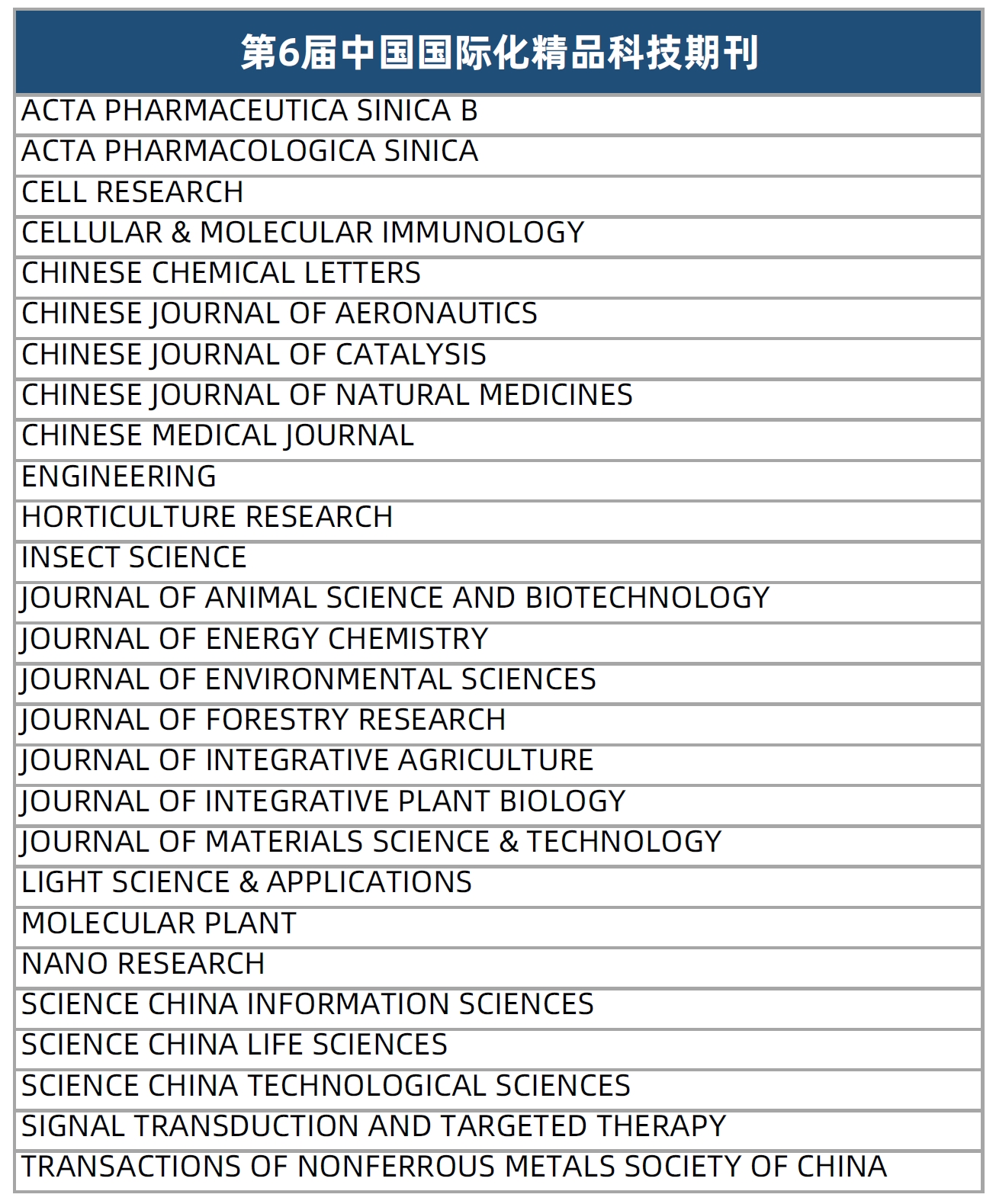 附:第6届中国精品科技期刊&中国国际化精品科技期刊名单