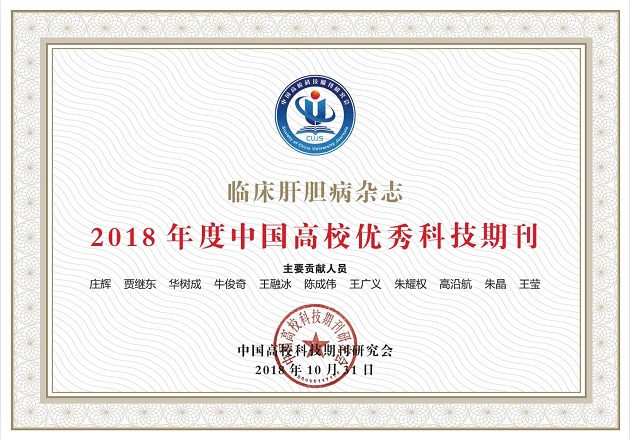 11月2日,中国高校科技期刊研究会第22次年会在重庆召开,会议表彰《临床肝胆病杂志》为 “2018年度中国高校优秀科技期刊”,这是本刊继2016年度之后,蝉联此项荣誉。